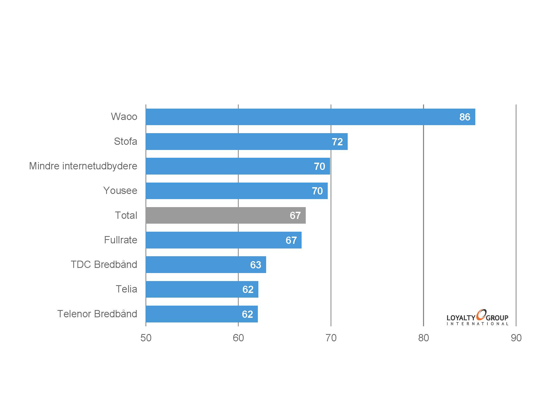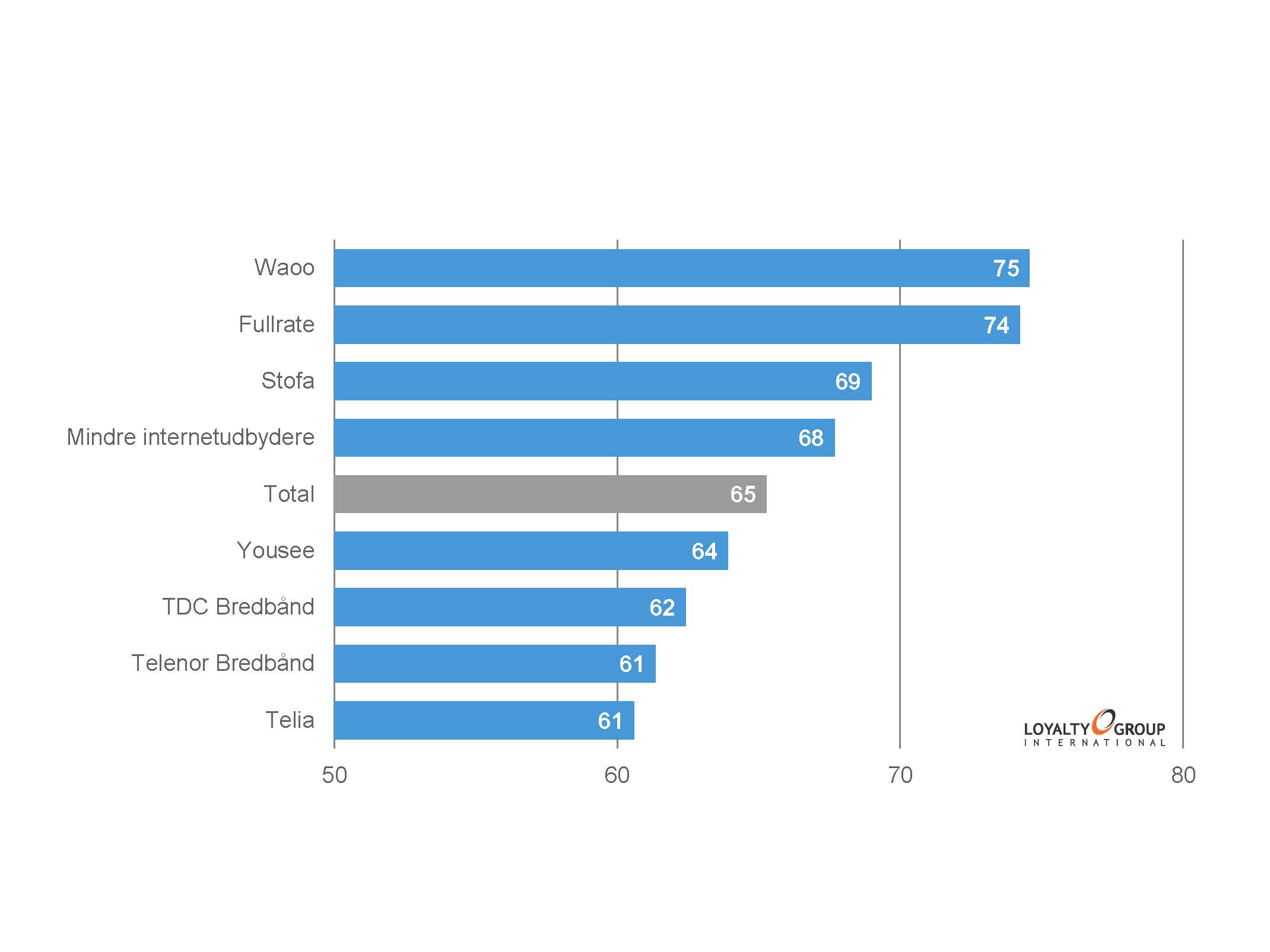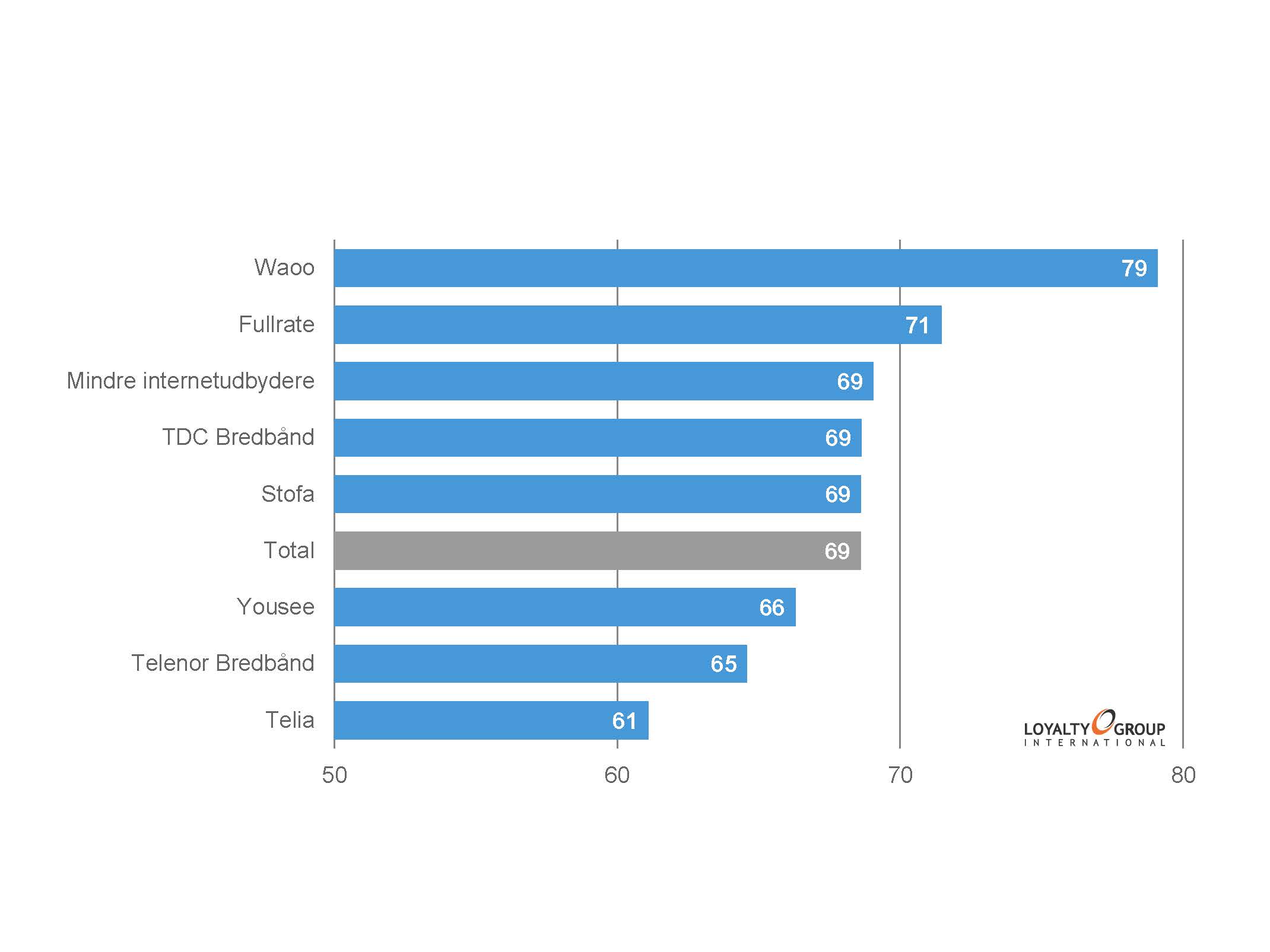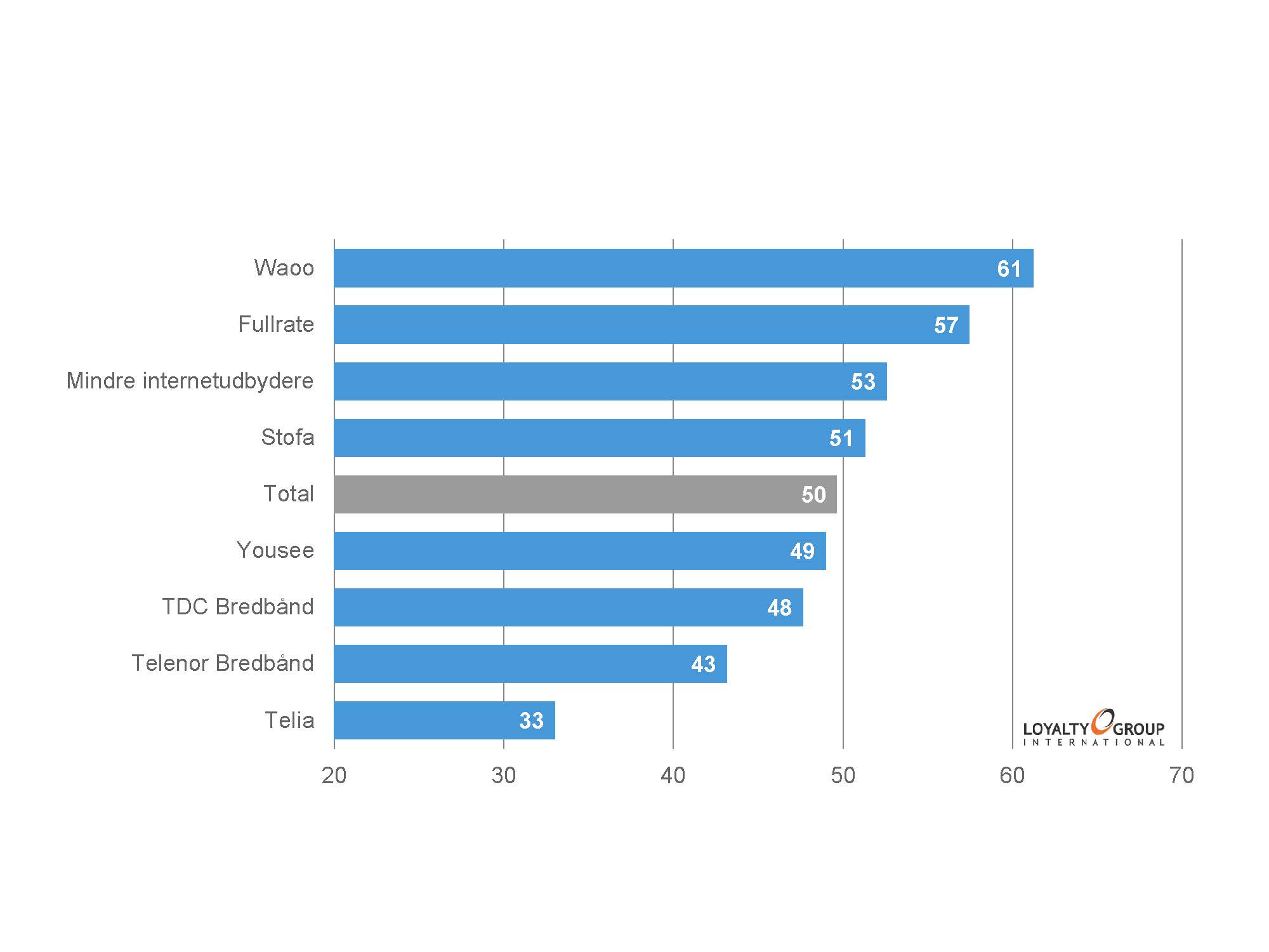 Og her har Waoo de mest loyale kunder. Telia befinder sig i bunden med et pænt stykke op til de andre.