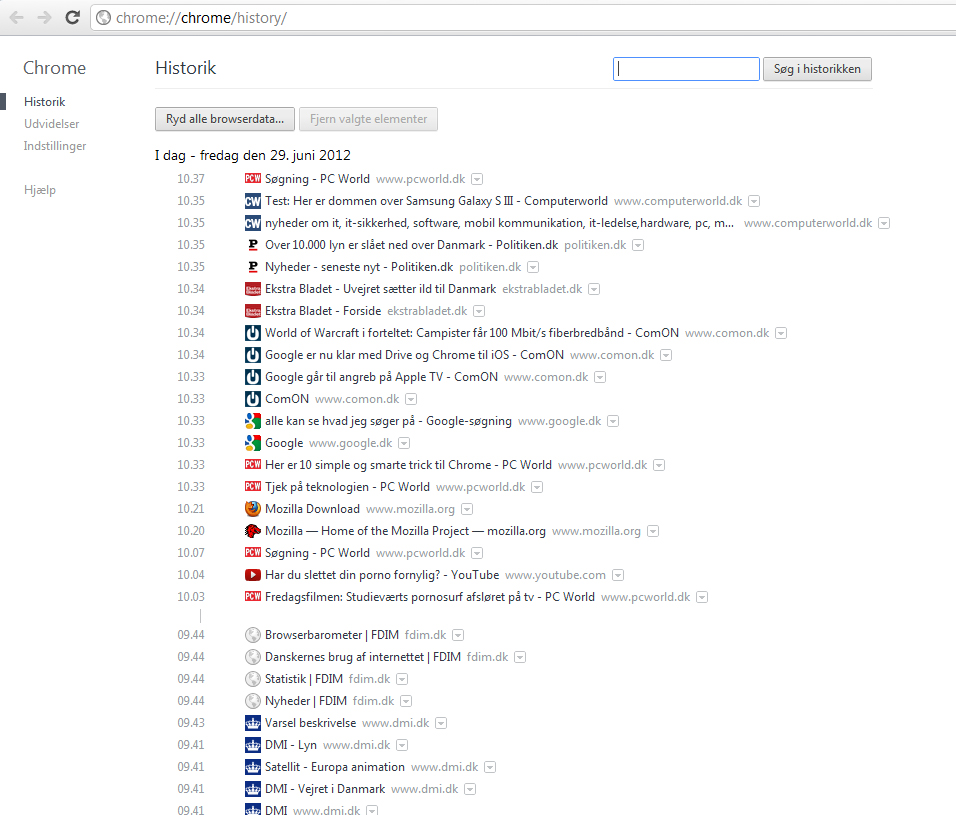Google Chrome sørger nemlig for at holde styr på alle dine bevægelser på nettet, og det er nemt at gå flere uger tilbage og se, hvilke websider du besøgte på præcise klokkeslæt.