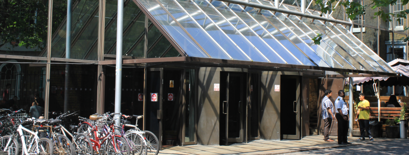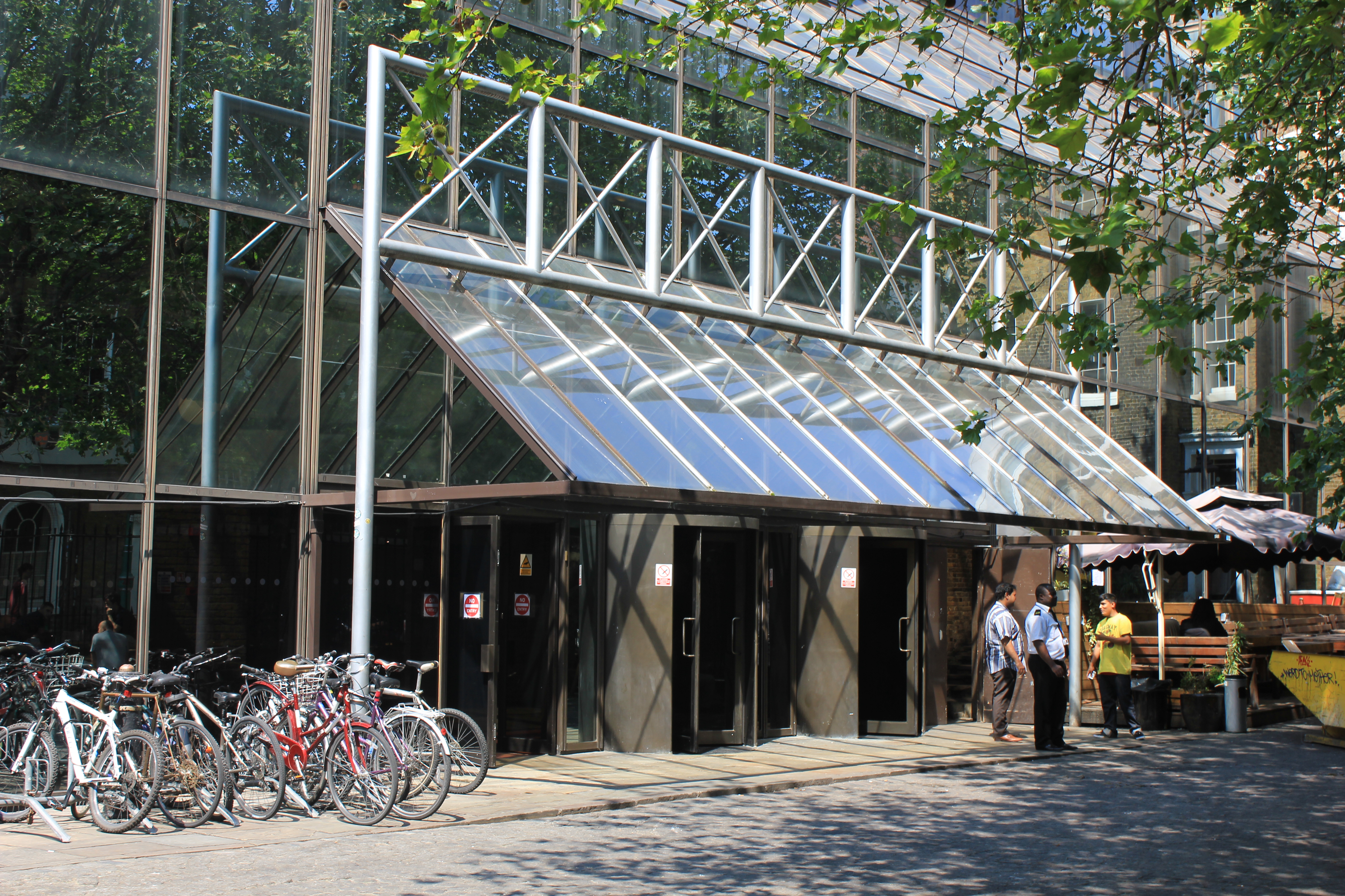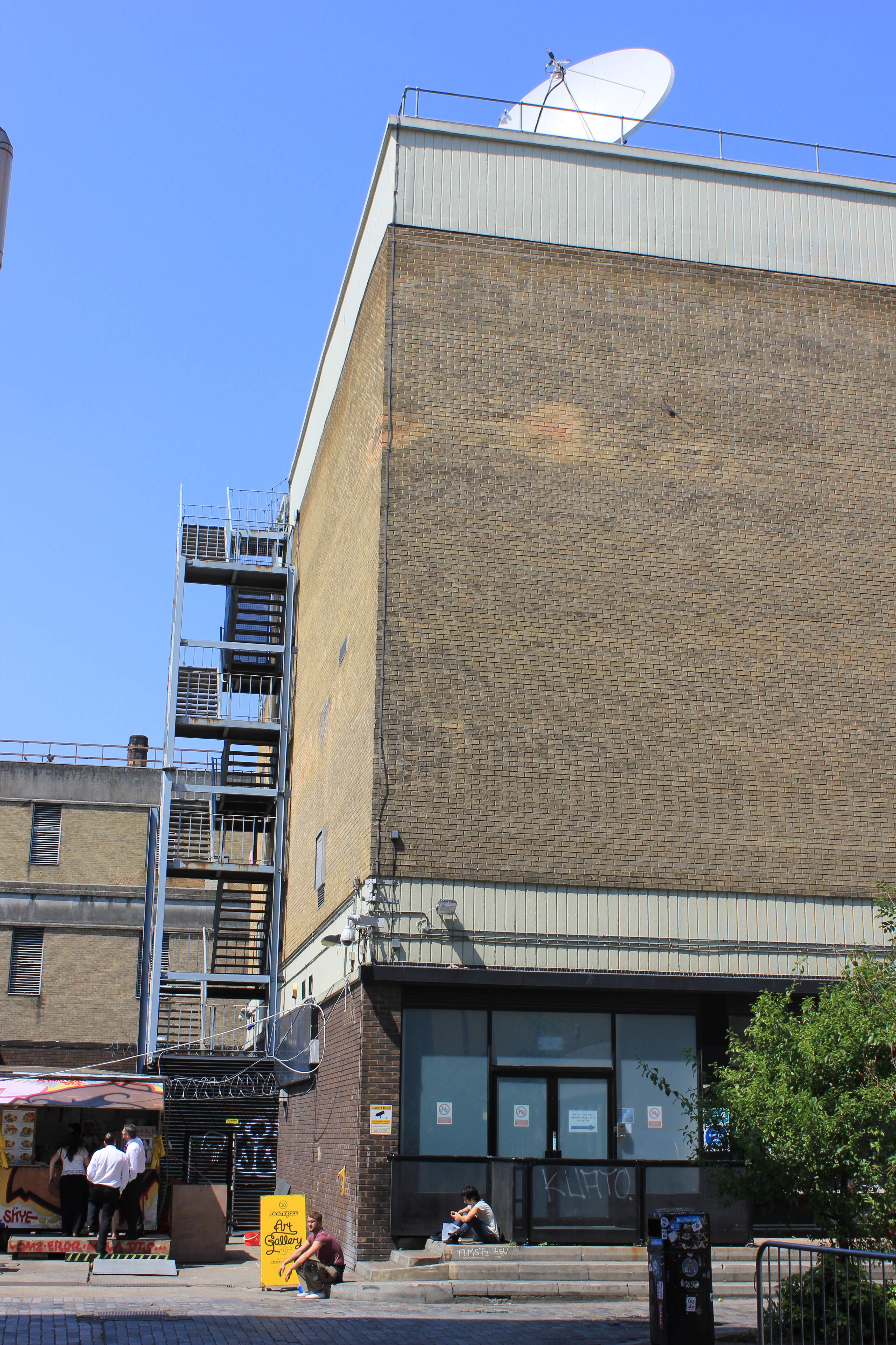 På vej gennem smøgen mellem Interxions bygninger her i det gamle industrikvarter i det nu trendy East End fortæller mine to Interxion-ledsagere om byggerodet omkring os.