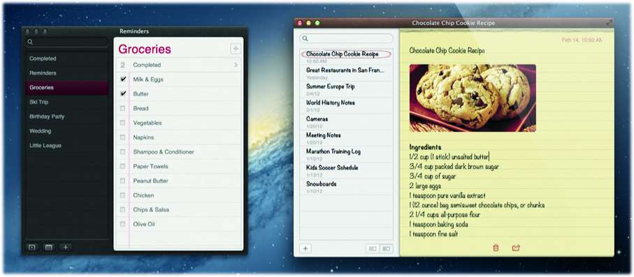 Programmet synkroniserer med de tilsvarende note-apps på iPhone og iPad. Men hvad mange ikke umiddelbart bemærker, når de bruger note-programmet i Mountain Lion er, at de kan tage notater ud af selve note-programmet og klæbe dem fast på skærmen.