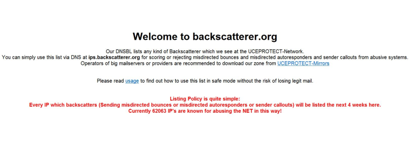 Backscatterer bruges nemlig af adskillige mail-udbydere, typisk de ret restriktive, som opslagsværk til at validere en given mailservers sikkerhed.