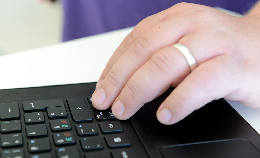 Det lykkedes os at mase touchpaden helt ned, og der holdt den sig, indtil vi havde lukket låget på computeren.