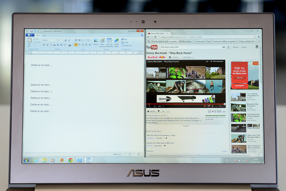 Selve billedet står rigtig godt. Der er klare farver, og skærmen har ikke det udvaskede udtryk, som vi har set på især de lidt billigere ultrabooks. Det er mere end godkendt.