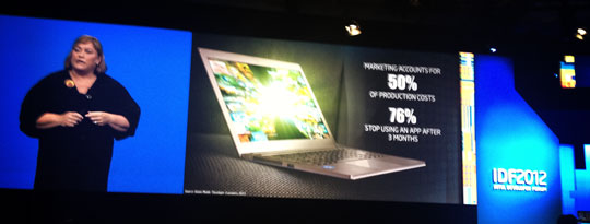 "Dybest set vil forbrugerne bare vide, hvordan de kan afvikle deres iOS-apps på deres Android-enheder", fortalte Renée James og præsenterede en mulig løsning på det problem, 'transparent computing'.
