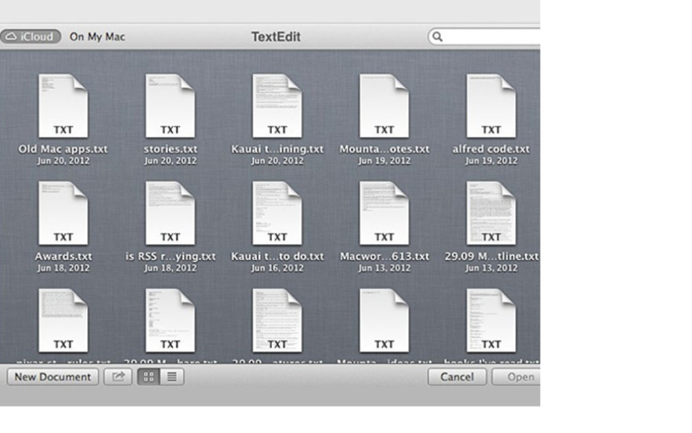 Bruger du eksempelvis et tekstbehandlingsprogram, der undersøtter iCloud, får du et overblik over alle de dokumenter, der er gemt i iCloud, når du skal åbne en fil.