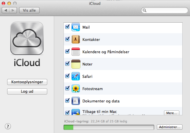 På hver af dine enheder kan du under iCloud-menuen vælge, hvilke ting du ønsker at synkronisere.
