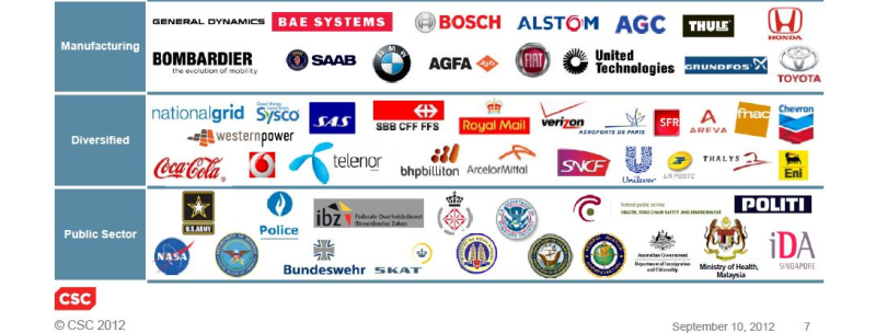 I hvert fald er de danske offentlige myndigheders logoer, sammen med flere private firmaer fra Danmark, fremhævet på den liste over kunder, som CSC fremviste overfor aktionærerne på investordagen i sidste uge.