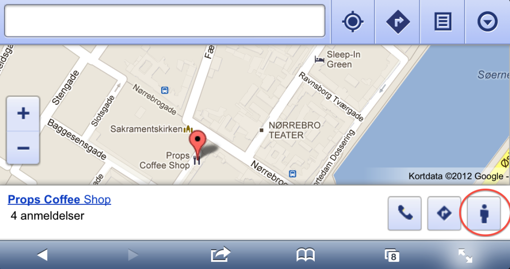 Bemærk dog, at du ikke kan trykke hvor som helst på kortet, men skal klikke på et særligt fremhævet punkt. Det kan eksempelvis være en butik, en cafe eller et busstoppested.