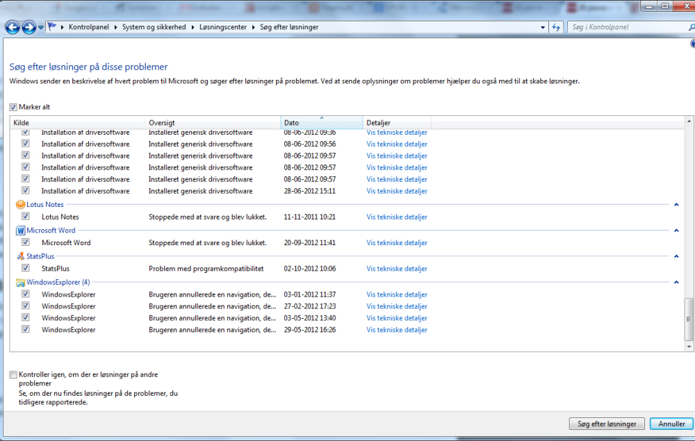 Prøv at gå ind i Kontrolpanel - System og sikkerhed - Løsningscenter.