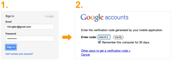Google og Facebook tilbyder nu også to-faktor-autentifikation: Man kan få tilsendt en midlertidig PIN-kode via sms til sin mobiltelefon, der skal indtastes sammen med den almindelige adgangskode, første gang man logger ind fra en ukendt maskine.