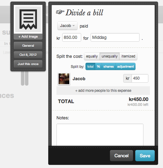 Er I eksempelvis en gruppe venner, der har været på restaurant, kan Splitwise dele regningen efter en lang række forskellige principper - eksempelvis efter en procentsats eller efter, hvilke retter I hver især har bestilt på restauranten.