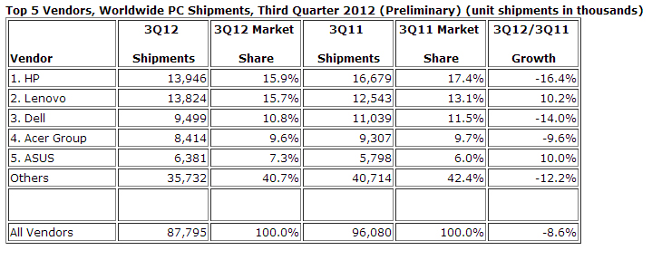 IDC havde på forhånd ventet, at det ville blive et stille tredje kvartal, fordi mange venter på det nye Windows 8, ligesom man fortsat oplever et pres fra produkter som smartphones og tablet-pc'er og kæmper med den generelle krisestemning blandt forbrugerne.