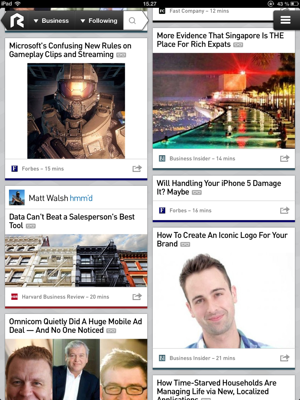 Alle nyhederne bliver præsenteret på din skærm som små firkantede historier. Som var det en opdatering på Facebook eller Pinterest.