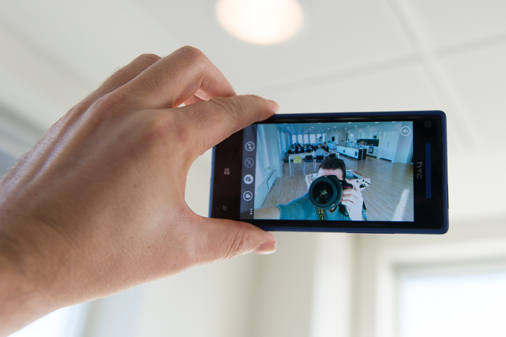 Som en ekstra bonus er HTC Windows Phone 8X udstyret med et frontkamera med vidvinkel. Det gør det noget nemmere at tage billeder af sig selv (med flere personer), når telefonen holdes ud i strakt arm.