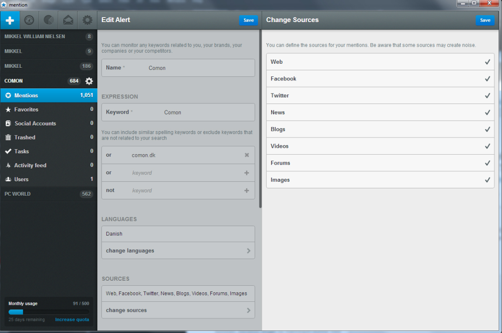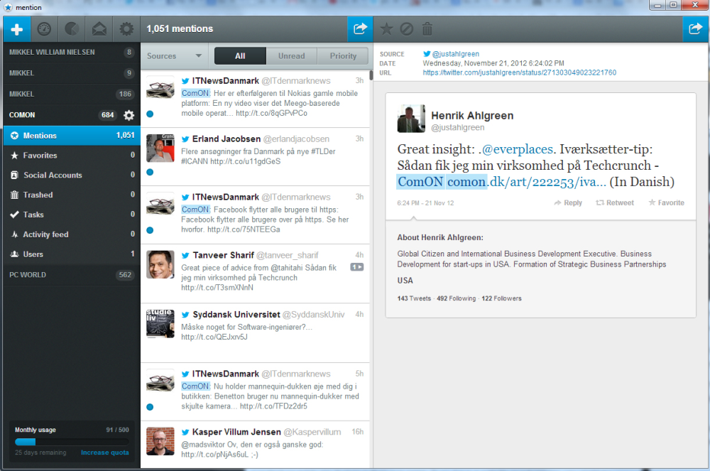 Den er dog væsentlig mere overskuelig, og du får med Mention ikke sendt links via mail, der bare ender med at fylde indbakken op.