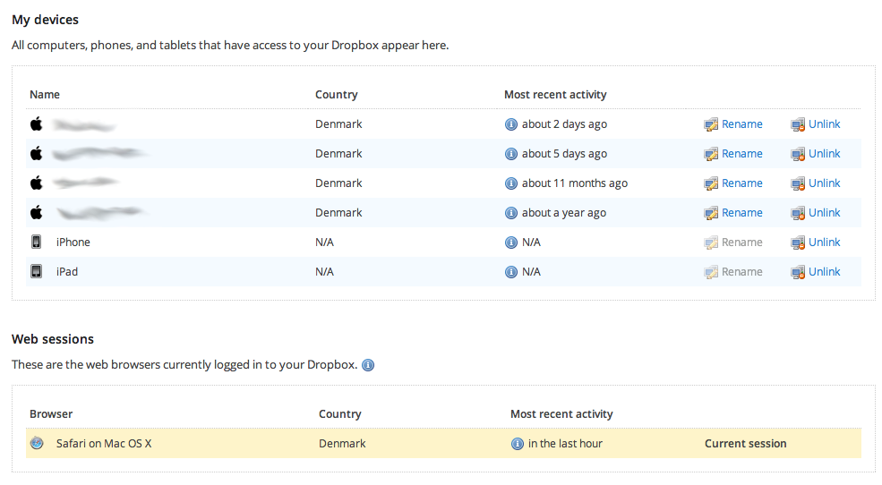 På den måde vil du hurtigt opdage det, hvis du pludselig får uønskede gæster på din Dropbox-konto.