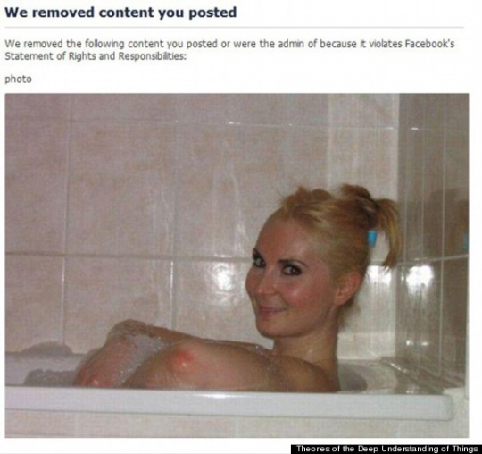 En anden måde at blive smidt ud af Facebooks dørvagte på kunne også være at lægge tvetydige billeder op. Denne kvinde har fået sit billede fjernet, fordi det ifølge Facebooks opfattelse strider mod reglerne. Mon ikke en robot eller censor har haft lidt for travlt?