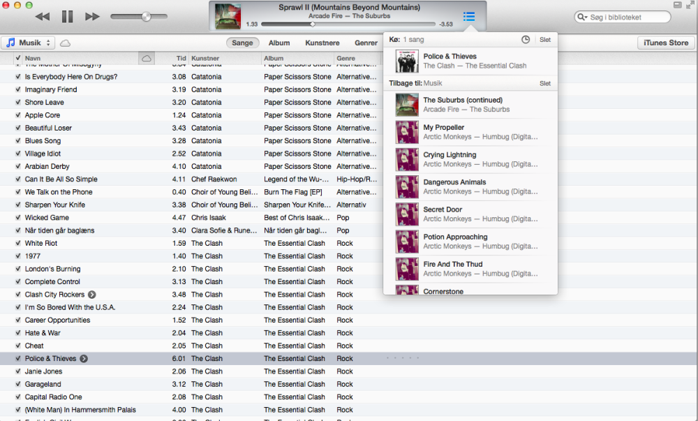 Når du i iTunes 11 tager en sang fra dit musik-arkiv og gør klar til at flytte den, vil der i højre side automatisk dukke et panel op med en oversigt over dine spillelister.