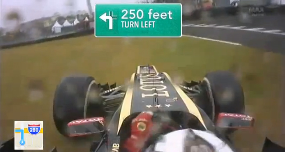 Her sender Apple Maps racerkøreren Kimi Raikkonen på afveje i sin Formel 1-racer, hvilket han ikke er specielt begejstret for: