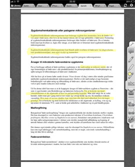 Du laver markeringer i teksten ved blot at trække fingeren hen over de passager, du vil fremhæve.