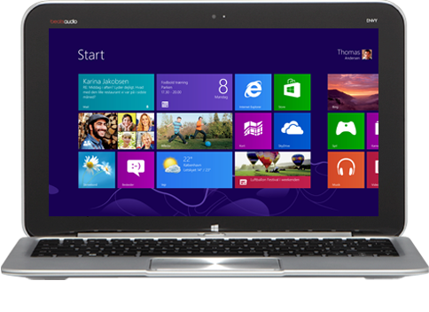 Først og fremmest processoren. Det er en dualcore Intel Atom Z2760 på 1,8 gigahertz parret med blot 2 gigabyte hukommelse, og det fascinerende er, at Envy x2 burde være forslæbende langsom med det setup om bord - men i stedet flyver du igennem Windows 8 systemet, lige så hurtigt som dine små fingre kan bladre mellem funktionerne. Samtidig er det en ordinær x86 processor, godt nok kun 32-bit, så alle de normale programmer kan installeres og køre på maskinen. Vi havde heller ingen problemer med at afspille HD-film på x2.