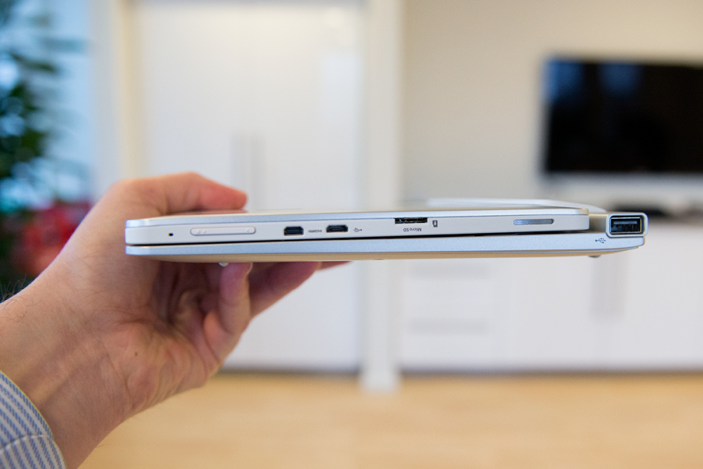 Det er alle micro-porte til HDMI, USB og hukommelseskort af typen Micro SD, der tidligere har været meget udbredt i mobiltelefoner.