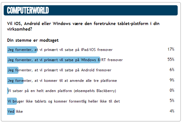Vælger man at se resultatet af afstemningen som et udtryk for en generel holdning blandt danske it-chefer og it-professionelle, går Windows 8/RT og Surface en lys tid i møde i forhold til virksomhederne.