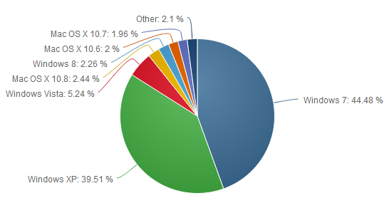 Det er fortsat Windows 7, der dominerer med 44,48 procent af markedet, men faktisk er Windows 7 faldet en smule i forhold til december.