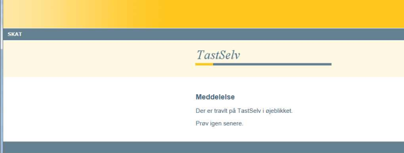 Skat skrev fredag eftermiddag på hjemmesiden, at "Der er i øjeblikket problemer med at komme ind i TastSelv Erhverv"