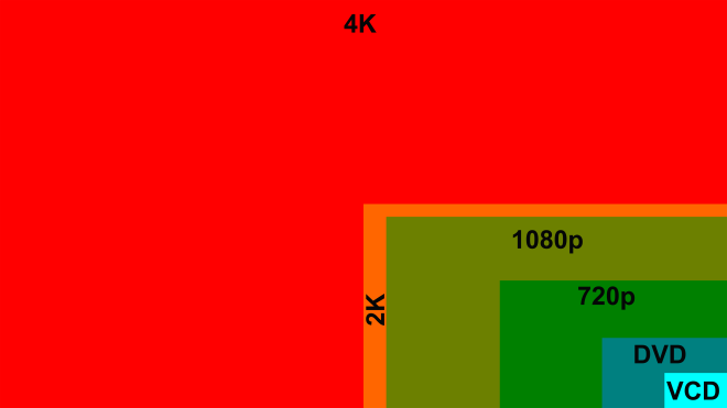 Billedet i en standard HD-opløsning ser ret skarpt ud på en fladskærm i stuen, men bliver kornet, når det projiceres op i en bredde på 12 meter. Det problem løser 4K-standarden. Oplevelsen af billedets skarphed med video i denne opløsning i en biograf kan sammenlignes med oplevelsen af HD-video på en almindelig fladskærm i stuen.