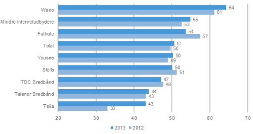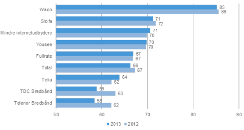 "Undersøgelsen viser, at kunderne hos Waoo! vurderer selskabet til at have det bedste image [...] I bunden af listen finder man Telenor Bredbånd, som har overtaget sidstepladsen fra Telia," skriver Loyalty Group i en pressemeddelelse.