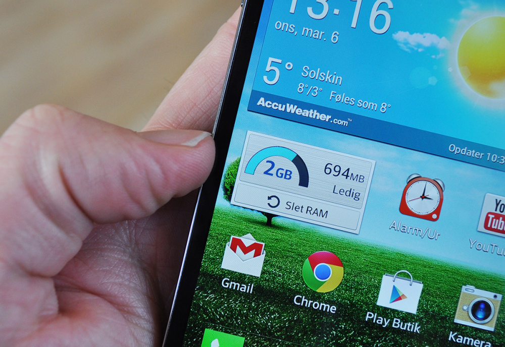 Opløsningen er 1.280 gange 768 pixel, og dermed er den ikke fuld HD, som vi stigende grad kommer til at se på nye Android-topmodeller, eksempelvis HTC One og Sony Xperia Z.