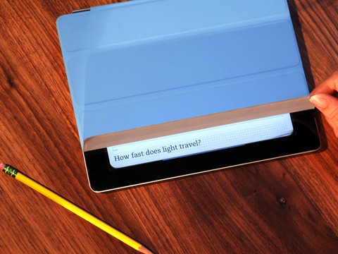 Med Evernote Peek skal du bruge din iPads smartcover til at dække over de korrekte svar på spørgsmålene. Du løfter den nederste del af coveret for at læse spørgsmålet, og hvis du løfter coveret helt, bliver du også præsenteret for svaret.