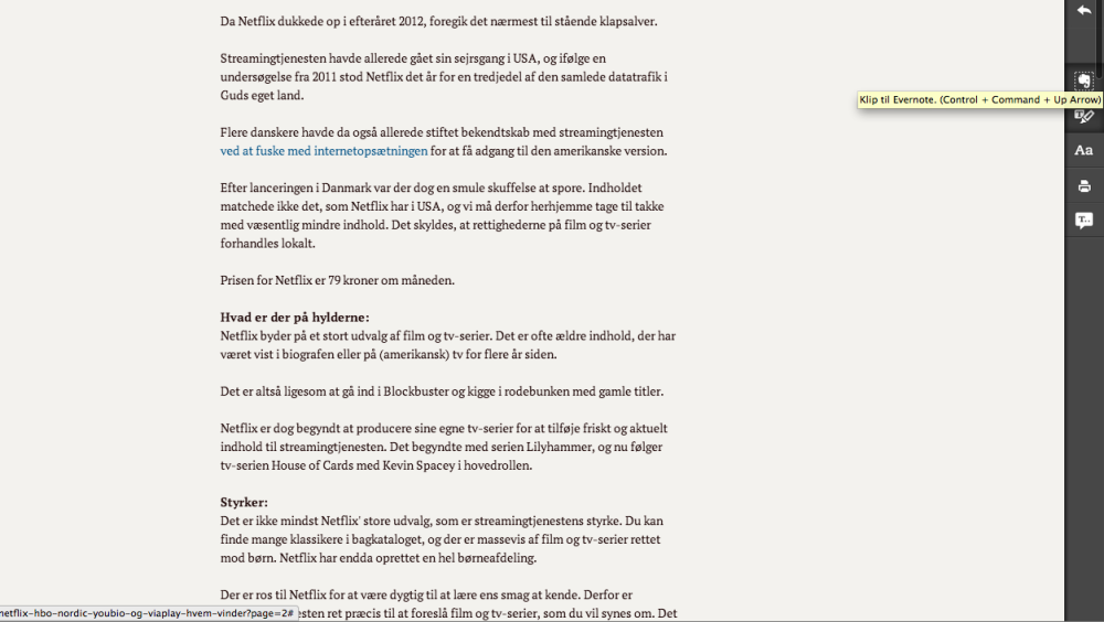 Har du ikke tid til at læse artiklen nu, kan du også klikke på ikonet "Klip til Evernote", hvorefter artiklen bliver gemt på din Evernote, hvor du kan læse den, når du har bedre tid.