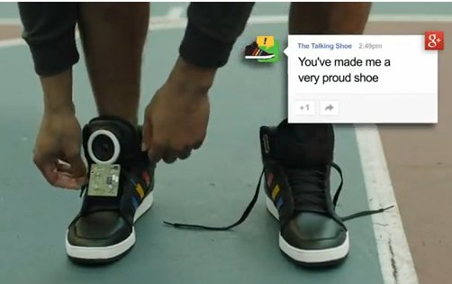 Den berømte computerbrille Google Glass er ikke den eneste spændende opfindelse fra internet-giganten. På South by Southwest konferencen i Texas har Google fremvist en "talende sko", der oversætter dine bevægelsesdata til sjove beskeder.
