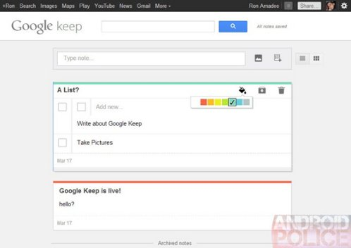 Den nye Google-tjeneste Keep var online for en kort bemærkning i weekenden, inden den forsvandt igen. Android Police har tidligere fundet henvisninger til tjenesten, og denne gang har man nået at tage en række skærmbilleder, der viser nogle af de grundlæggende funktioner.