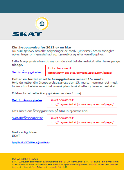 Det hele ligner noget, der kunne være skrevet i en mail fra skat, og tidspunktet i forbindelse med årsopgørelserne passer perfekt.