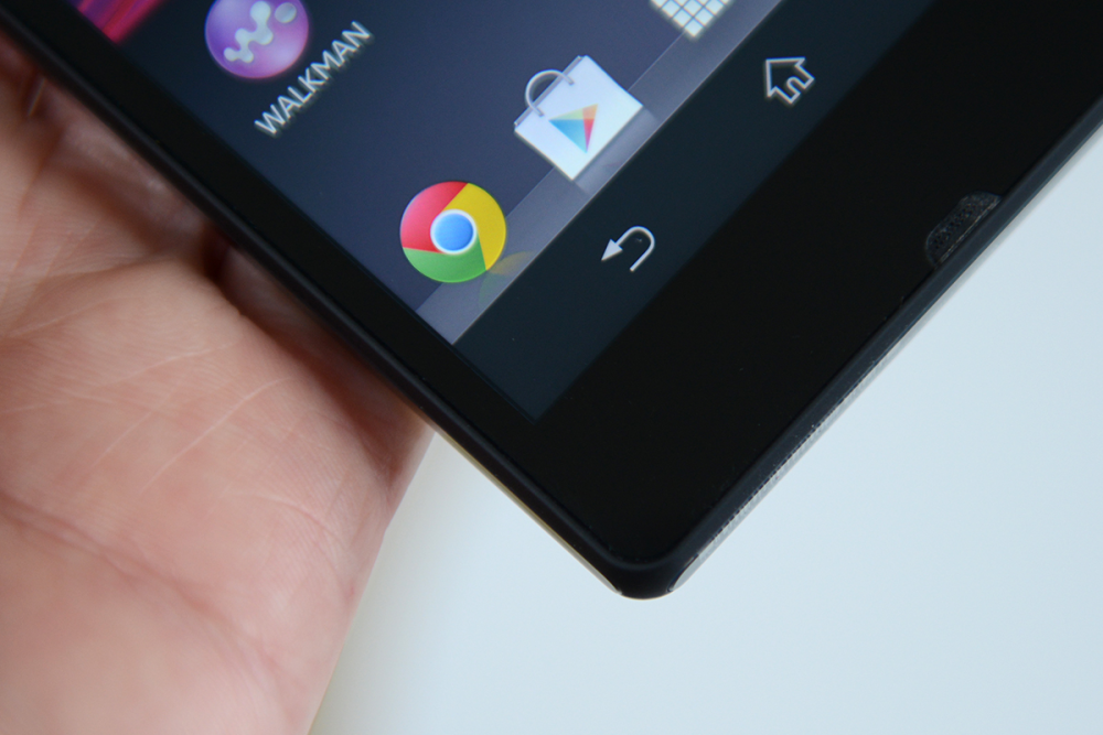 På den fem tommer store skærm har Sony valgt at bruge noget af pladsen til virtuelle betjeningsknapper i stedet for at have fysiske under displayet. Det er samme stil, som eksempelvis ses på Google Nexus 4.