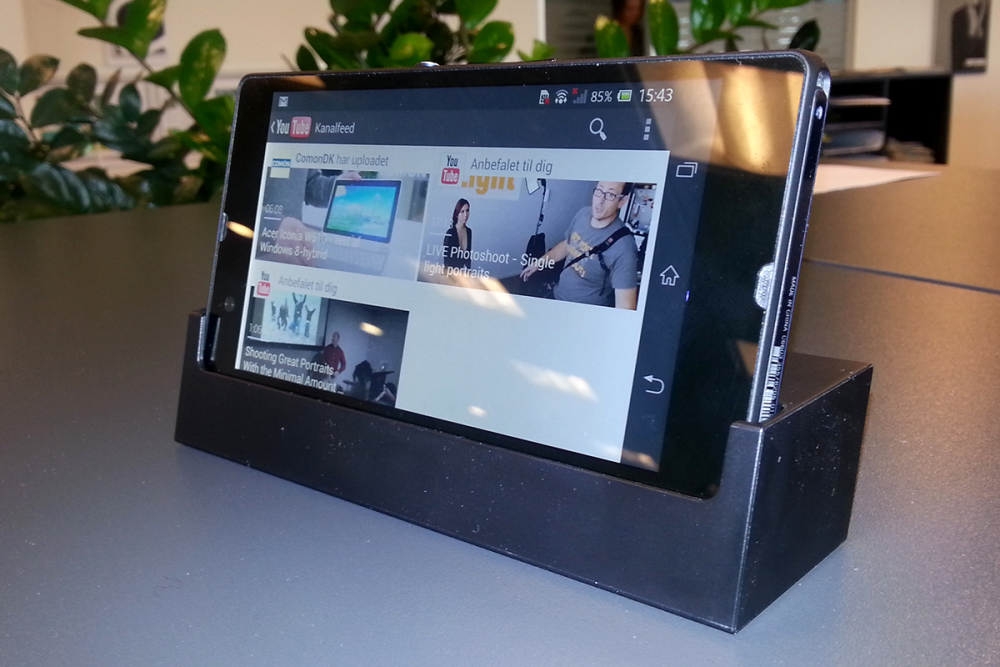 Der følger i øvrigt en lille stander med til mobilen, så Xperia Z kan lægge sig på siden og tage sig en morfar. I standeren oplades telefonen, og den kan eksempelvis bruges til at vise film, videoklip eller billede. Det er rart at se, at Sony giver lidt ekstra med i papkassen.