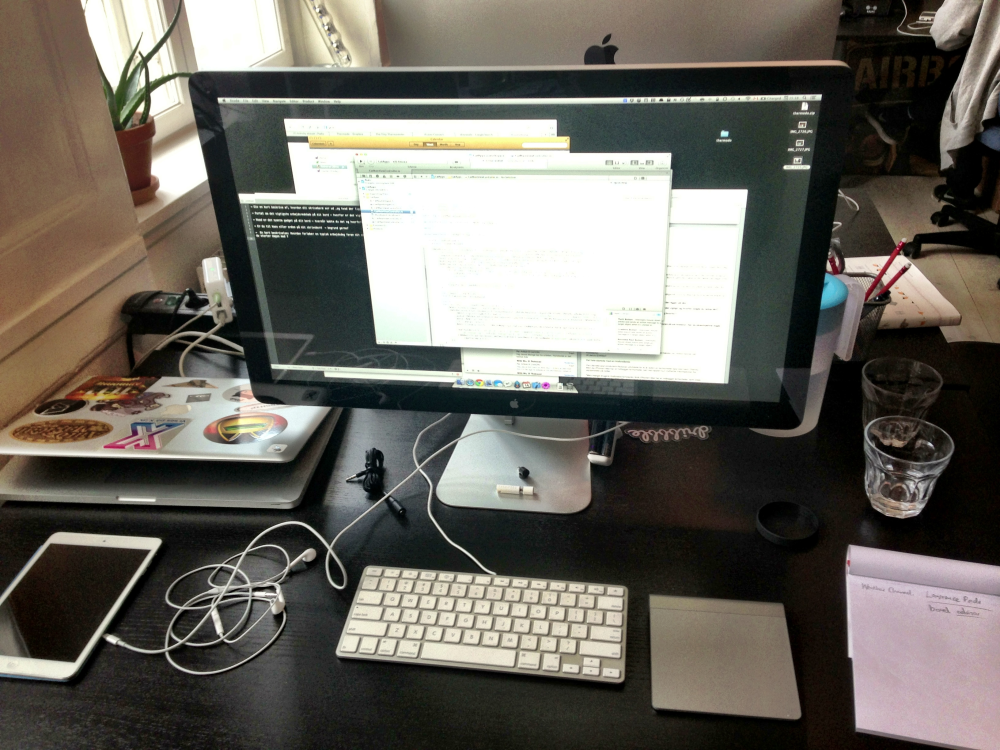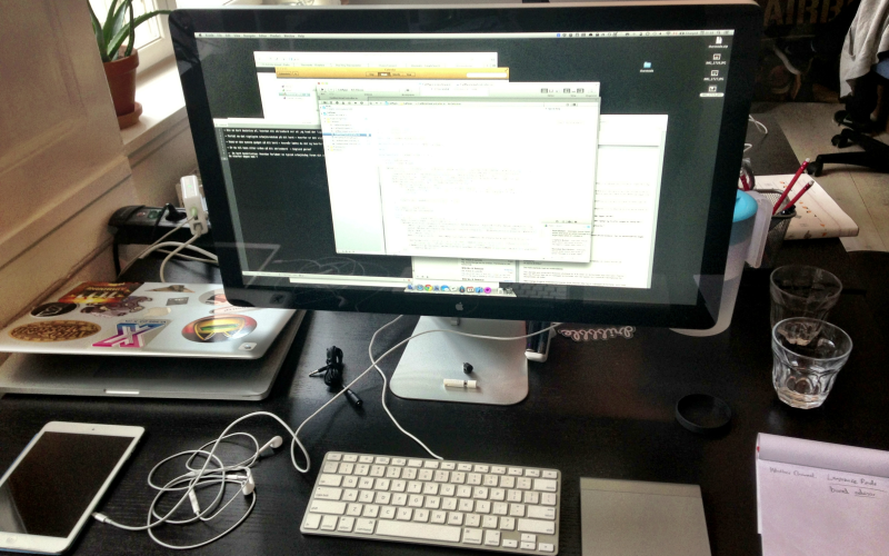 Ved mit skrivebord har jeg koblet den til et Apple Cinema Dispay på 27 tommer. Jeg kunne også have købt en iMac, men jeg har sådan set ikke brug for mere end én computer, og med en ekstern skærm er det også lettere at udskifte sin computer.