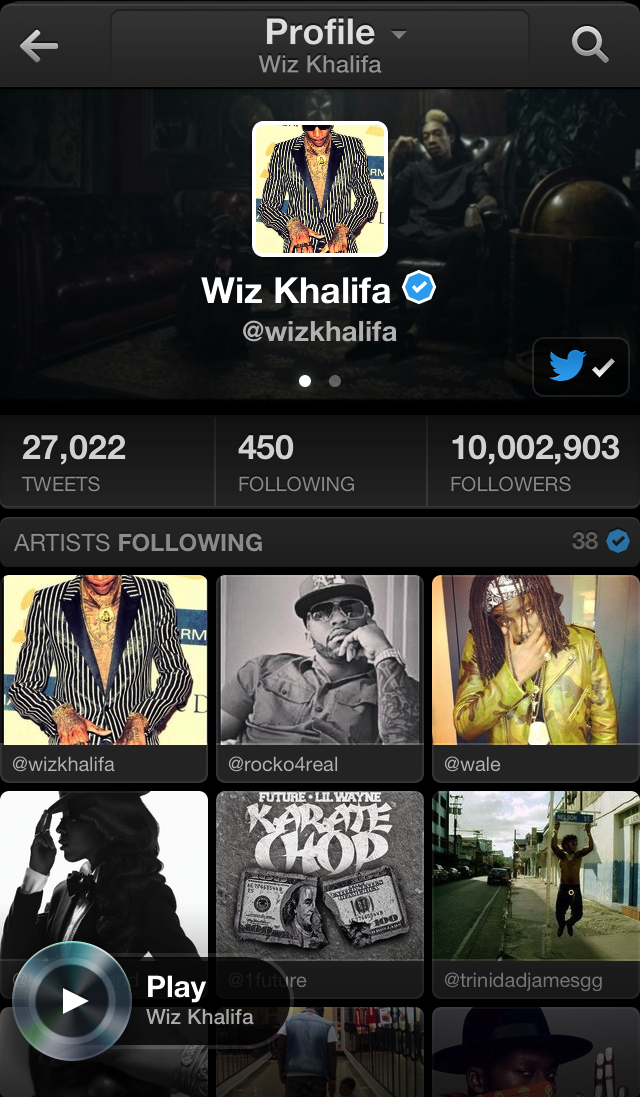 Hvis der linkes til musik på Twitter, kan der afspilles en smagsprøve i app'en direkte via iTunes. Men abonnerer man på Rdio eller Spotify, kan man i stedet åbne musikken derfra og lytte til nummeret i sin fulde længde. Andre musiktjenester tilføjes senere.