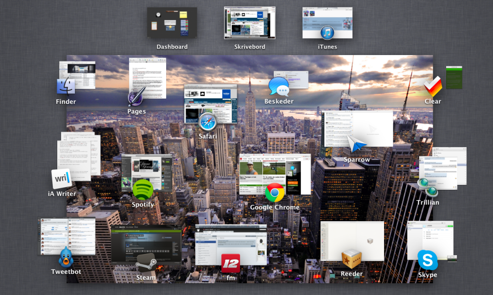 Har du flere vinduer åbent i et program, eksempelvis i Word eller Pages, kan du swipe nedad med fire fingre på trackpaden og få et overblik over alle de dokumenter, som du i øjeblikket jonglerer rundt med i netop dette program.
