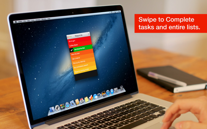 IPhone- og Mac-udgaven af Clear ligner næsten hinanden til forveksling. Dog med den forskel, at du på iPhonen afkrydser de fuldførte arbejdsopgaver ved at swipe på skærmen, mens du på Mac'en skal swipe med to fingre på din touchpad.
