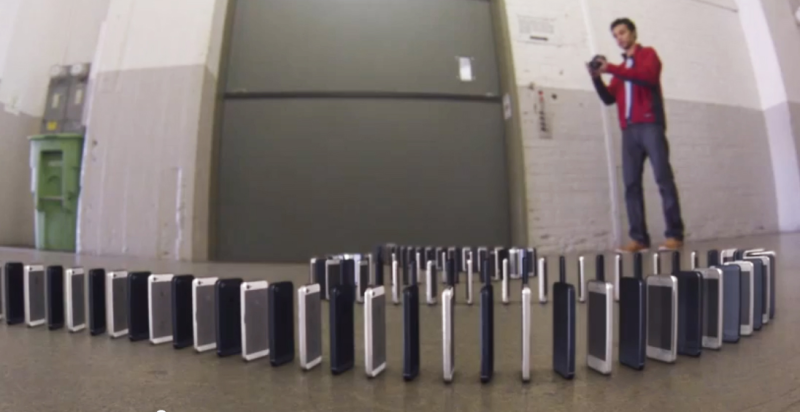 Tag 10.000 eksemplarer af iPhone 5, stil dem op på en række og lad dem falde som dominobrikker.