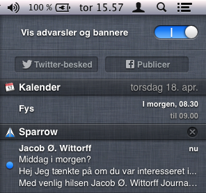 For at minde dig om at funktionen er slukket, vil ikonet Meddelelser være gråt i menubjælken. Meddelelser tænder hjælpsomt nok sig selv igen dagen efter, så man ikke skal bekymre sig for, om man glemmer at aktivere den igen.