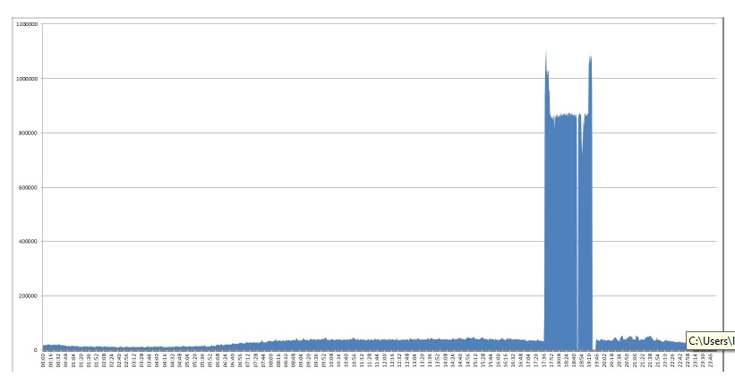 Kapaciteten bag angrebene har typisk været på tre gigabit per sekund.