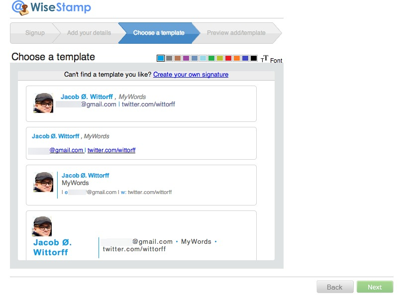 Ligesom tjenesten også gør det let at krydre din signatur med logoer, billeder samt links til din profiler på sociale netværk.