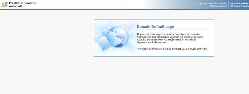 "Domain Default page. If you see this page it means that Apache Domain Service for this domain is locked..."