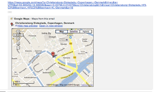 I beskrivelsen af Labs-tilføjelsen kunne man dog få det indtryk, at den indsætter et kort, hver gang der bliver nævnt en adresse i en mail. Men det er såvidt vi kan se desværre ikke tilfældet.