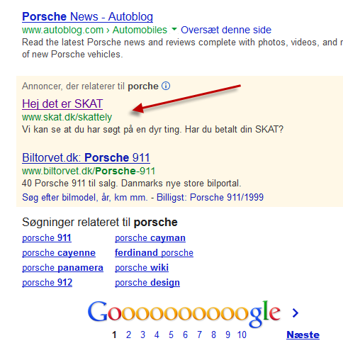Søgte du i morges på luksusbilmærker som "Porsche", "Lamborghini" og "Ferrari" i Google, fik du blandt andet følgende tekst-reklame: